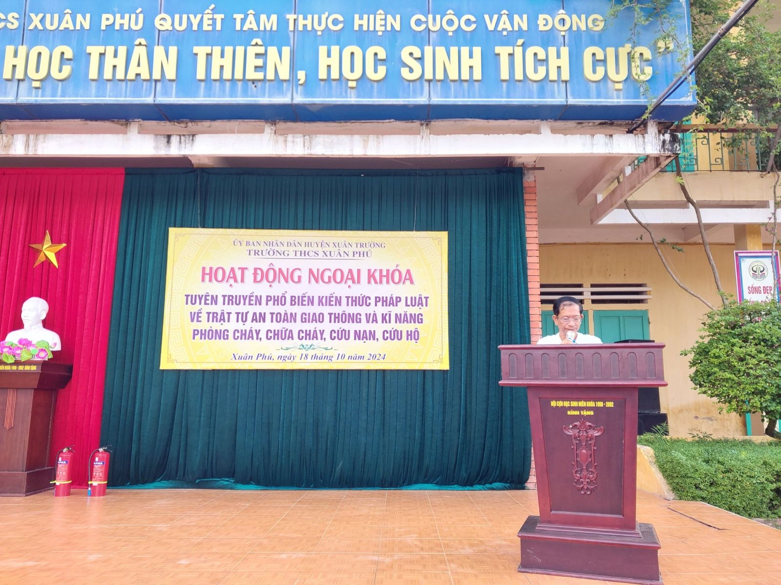 Thực hiện Kế hoạch liên ngành của Công an Huyện và Phòng Giáo dục – Đào tạo huyện Xuân Trường về công tác tuyên truyền an toàn giao thông và phòng cháy chữa cháy, sáng ngày 18/10/2024, Trường THCS Xuân Phú đã phối hợp với Công an huyện Xuân Trường và Công an xã Xuân Phú tổ chức buổi ngoại khóa với chủ đề “Tuyên truyền, phổ biến kiến thức pháp luật về trật tự an toàn giao thông và kỹ năng phòng cháy chữa cháy, cứu nạn cứu hộ.”